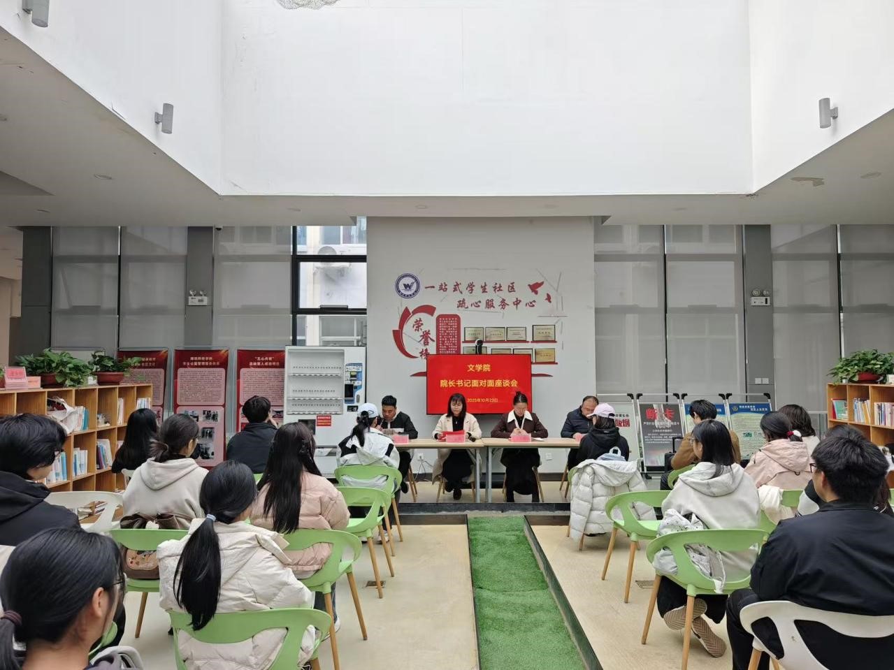 为畅通师生沟通渠道,精准了解学生需求,推动学院教育工作高质量发展,10月23日,文学院“院长书记面对面”一站式座谈会在一号楼学生客厅顺利举行。文学院主要领导干部出席会议并与学生代表围绕学院建设与学生成长展开深入交流。