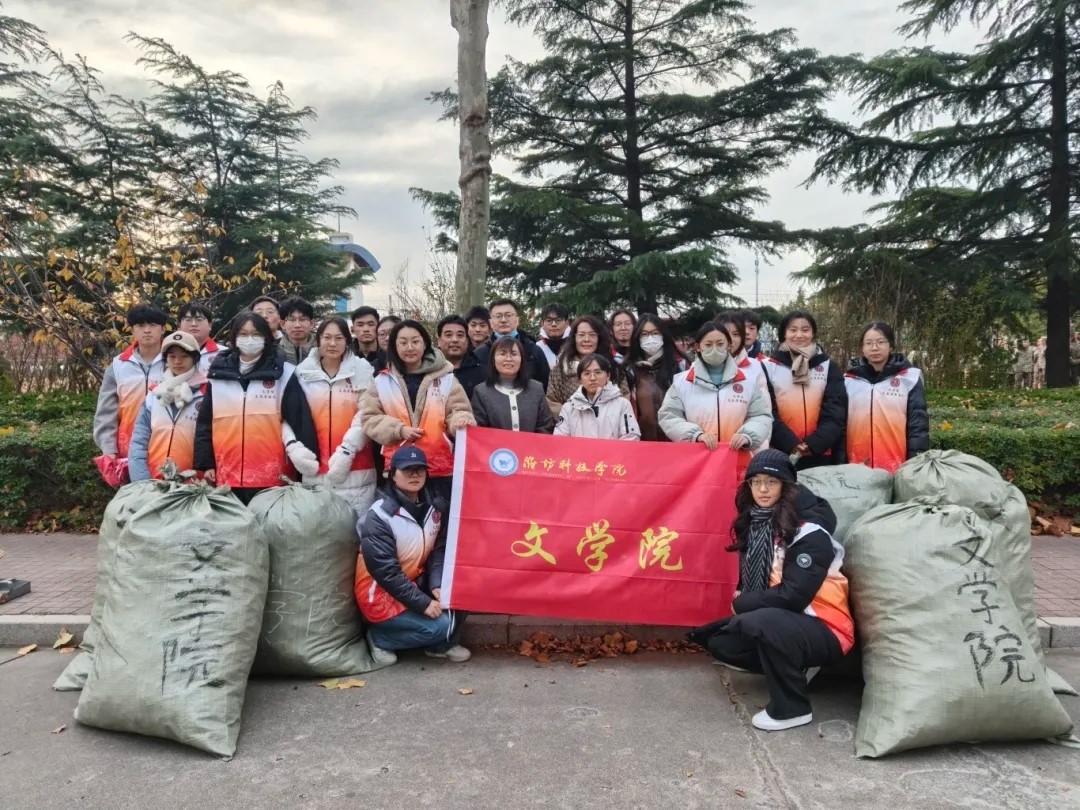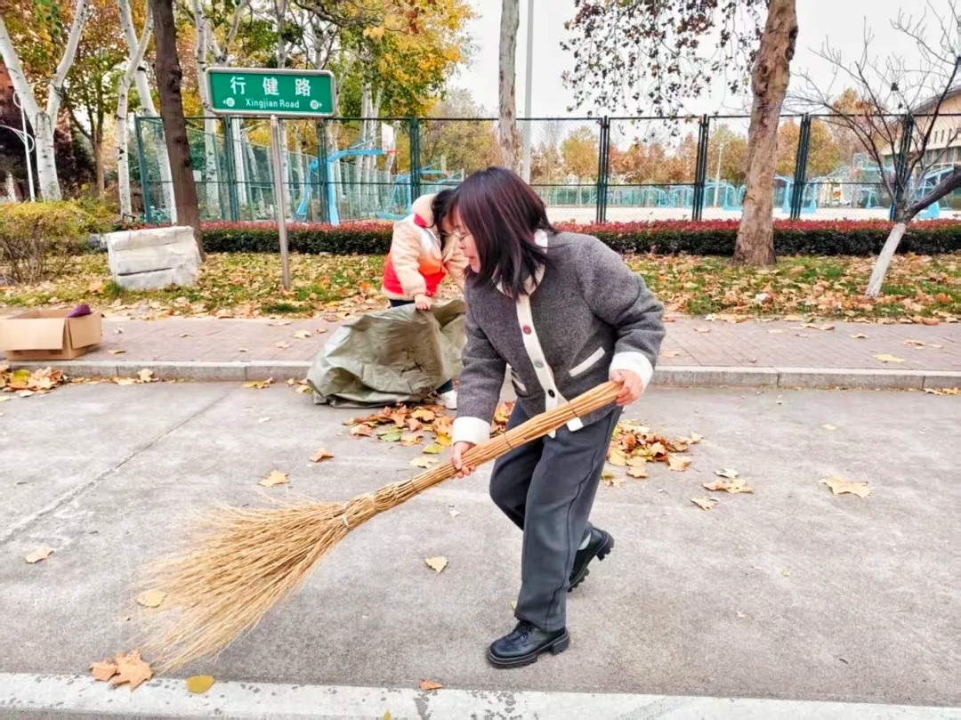 活动中,文学院院长孙淑娟、党支部书记王燕玲带领师生共同参与,老师们俯身清扫的同时传递文明卫生理念,以言传身教践行“知行合一”育人宗旨。学生志愿者主动分工协作开展清扫、捡拾杂物、打包清运等工作,寒风中尽显坚毅与热情,现场洋溢着师生同心的劳动氛围。