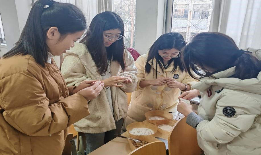 活动伊始,活动负责人以“溯源—释俗—践行”为主线开展冬至文化宣讲,系统梳理冬至节气的历史渊源与文化脉络。宣讲既援引《礼记》相关古制、“冬至大如年”等传统民谚,又结合南北饺子、汤圆等差异化食俗案例,清晰阐释了冬至所承载的团圆理念与文化内涵,进一步深化了同学们对传统节气的认知与理解。宣讲结束后,包饺子实践环节正式启动。现场已提前备妥各类食材与器具,同学们分组有序就座,分工协作开展实践:擀皮、填馅、捏合等环节衔接有序,娴熟者主动分享操作技巧,协助新手快速掌握要领,各式形态的饺子整齐摆放,现场氛围庄重而不失活力,充分展现了学子们传承传统习俗的积极态度与协作精神。
