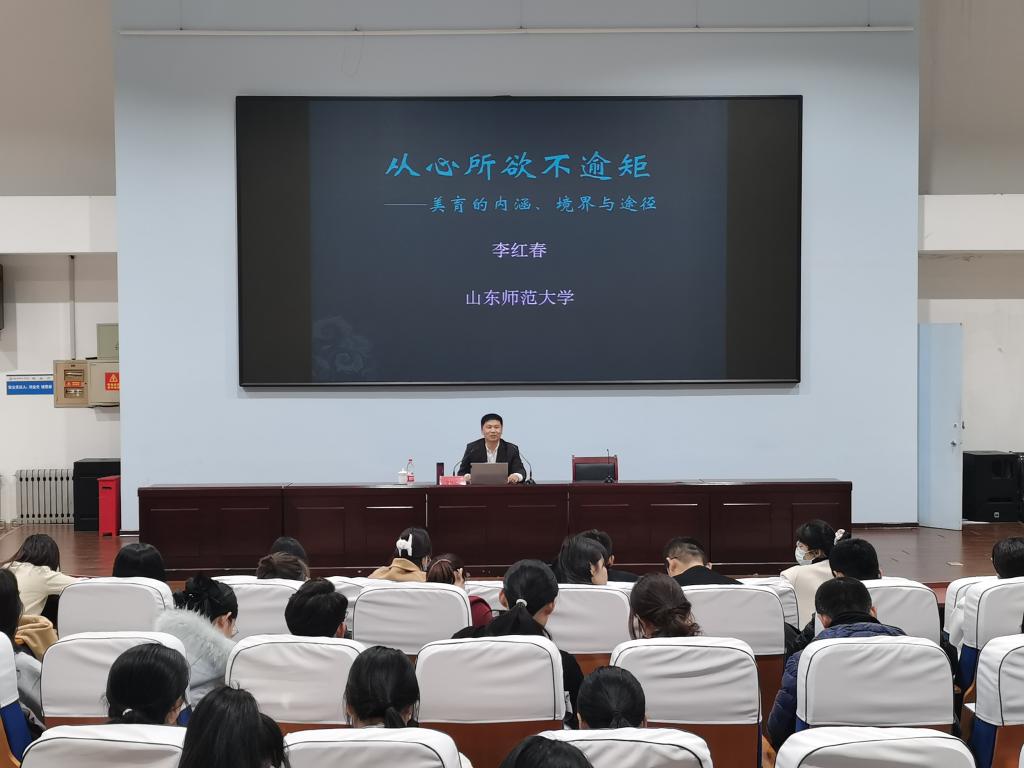12月8日下午,文学院特邀山东师范大学李红春教授作《“从心所欲不逾矩”——美育的内涵、境界与途径》专题报告。讲座由文学院副院长孙淑娟主持,潍坊科技学院全体新教师和文学院汉语言文学专业学生参加。