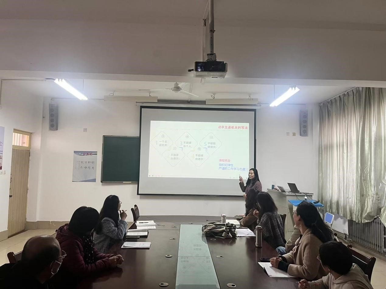 为落实立德树人根本任务,深化课堂教学改革,促进通识课程与思政教育的深度融合,11月6日,文学院大学语文教研室开展了“润物无声”课程思政教研活动,大学语文教研室全体教师参加。
