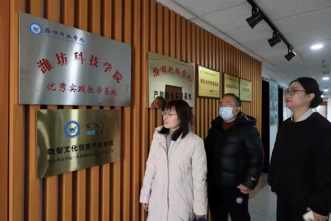 文学院院长孙淑娟、副院长王双同、学生科科长高芬一行人赴寿光畅想动漫科技有限公司开展校企合作专项交流。企业提出文案创作、视觉策划类的人才需求,学院回应实践资源对接、课程模块适配方向,达成合作识,搭建了影视文化实践平台。